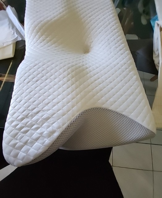 Sometimes sleeping on the back, sometimes on the side, stiff neck mornings made it time for a new pillow. After some research, the Queen size was ordered. After the first night, neck and shoulder pain were gone—really. About a week in, it felt a little firm for side sleeping, but the pillow includes a small removable oval insert on the back; taking it out per the instructions softened the neck support, and the result has been excellent.